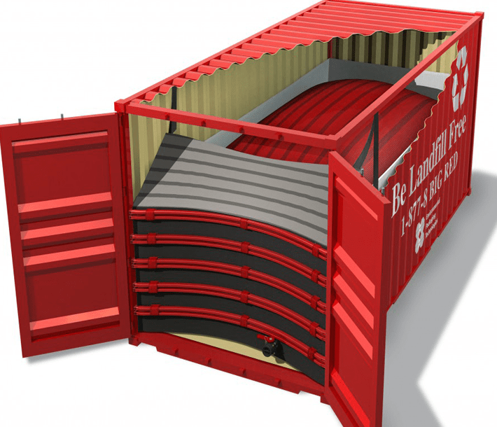 Для перевозки наливных грузов в контейнере используется вспомогательное оборудование – флекситанк: резервуар из эластичного пищевого пластмассового материала. Объем используемого флекситанка зависит от плотности груза и может быть от 14 до 26 куб.м.
